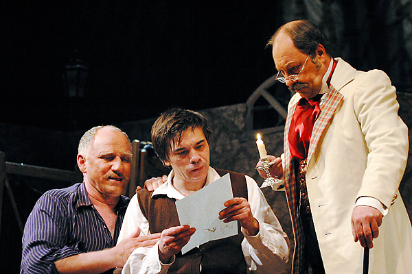 Потому вся борьба добра и зла в спектакле, обозначенных полюсами образов князя Валковского (Валентин Клементьев) и Ивана Петровича (Максим Дахненко), воспринимается как естественное течение жизни. Тонкий психологизм в актерской игре преобладает над авантюрно-детективным началом повествования. В мерное течение сюжета погружаешься, как в чтение романа, художники-постановщики — Владимир Серебровский и Виктория Севрюкова — дотошно-внимательны к деталям в сценографии и костюмах, и зритель оказывается захвачен этим действом с нарочитым налетом старомодности. Хотя что считать старомодностью -проникновенно играет всепрощенческую любовь в Наташе молодая актриса Нионель Гогаева; заразительна в образе маленькой Нелли, погубленной злом этого мира, Ольга Глушко.