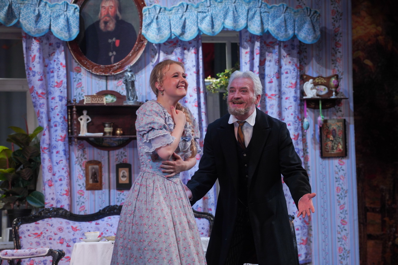 Историю о том, как незадачливый приказчик Ипполит своей смелостью победил купца-самодура Ахова и обрёл долгожданное счастье в лице прелестной Агнии, актёры играют с любовью и куражом, в лучших традициях Дома Островского. С вниманием к деталям, характерностью и несомненным обаянием. На первом плане в спектакле — Любовь Ещенко (Дарья Федосеевна Круглова) и Сергей Тезов (Ермил Зотыч Ахов). Ещенко играет прежде всего любящую мать, которая знает, что счастливой жизни со стариком-купцом её дочери не видать. Актриса ведет линию своей героини с постепенным крещендо, чтобы в финале в «поединке» с Аховым одержать победу и поставить его на колени. И действительно, персонаж Сергея Тезова, казалось бы, грозный и влиятельный, на поверку оказывается несчастным и глубоко устаревшим по своим понятиям человеком.