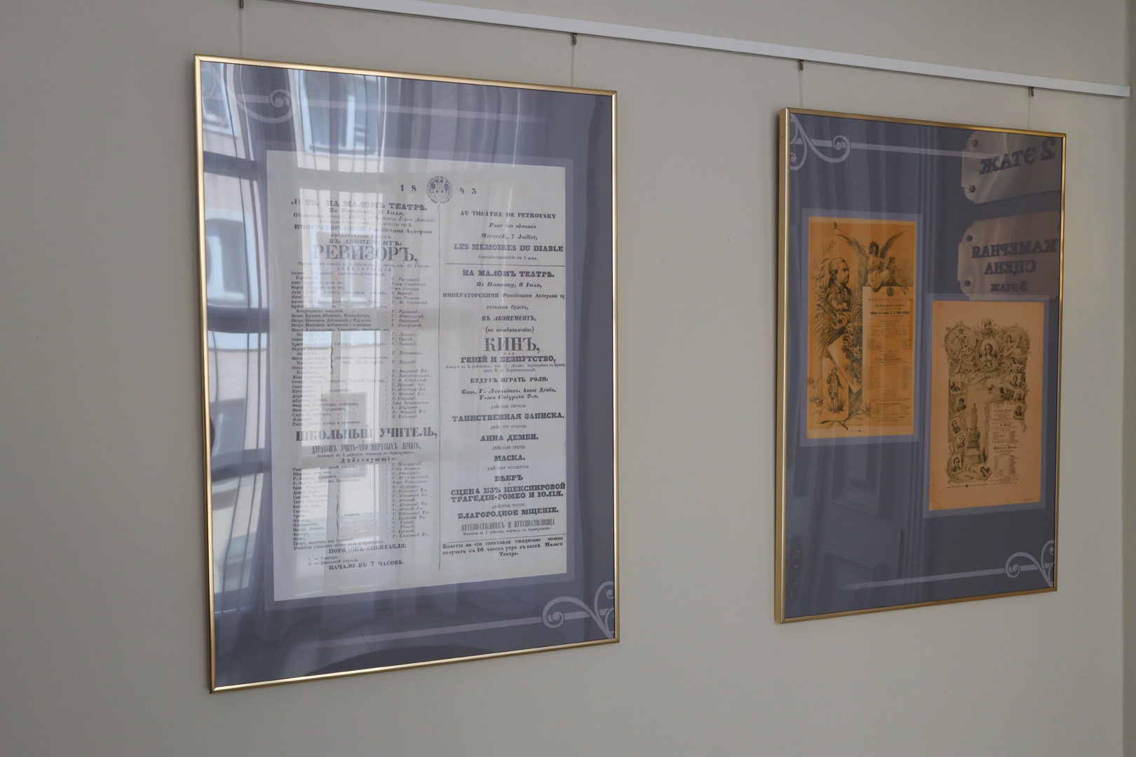 Кроме того, на лестнице, ведущей из фойе в зрительный зал, мы разместили афиши спектаклей, шедших в Малом театре до и после революции.