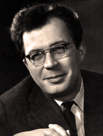 …Прежде всего, «Карнавальная ночь» Рязанова, а встретился я с ним на театральной сцене, когда был студентом, а он как раз очень процветал в театре. В хорошем таком творческом ударе был Варпаховский, который ставил ряд спектаклей на Георгия Ивановича, которые имели и у публики, и в прессе очень большой успех. Прежде всего, наверное, всё-таки, удивительно чистая личность человеческая. В нём был заложен какой-то такой благородный момент отношения и к жизни, к человеку, и к творчеству. Мне кажется, что роли, которые он исполнял в спектаклях «Дипломат», «Так и будет» Симонова, ещё какая-то пьеса Зорина была здесь, он тоже там играл главную роль. Это были такие социальные роли, «нашего советского человека». И в хорошем смысле была узнаваемость положительных черт человека того времени, и в то же время, как говорится, был какой-то зов к идеалу, вот я бы так сказал. Простого, естественного, как будто ничего не играющего, а живущего на сцене человека. И вот это сразу привлекало и зрителей, в тот момент, когда я ещё был студентом, и я обратил на этого актёра внимание. Ну, а потом, когда я уже вернулся из театра Маяковского, мы уже стали вместе работать и даже играть, в "Царе Борисе», например, мы играли вместе, он играл Романова…