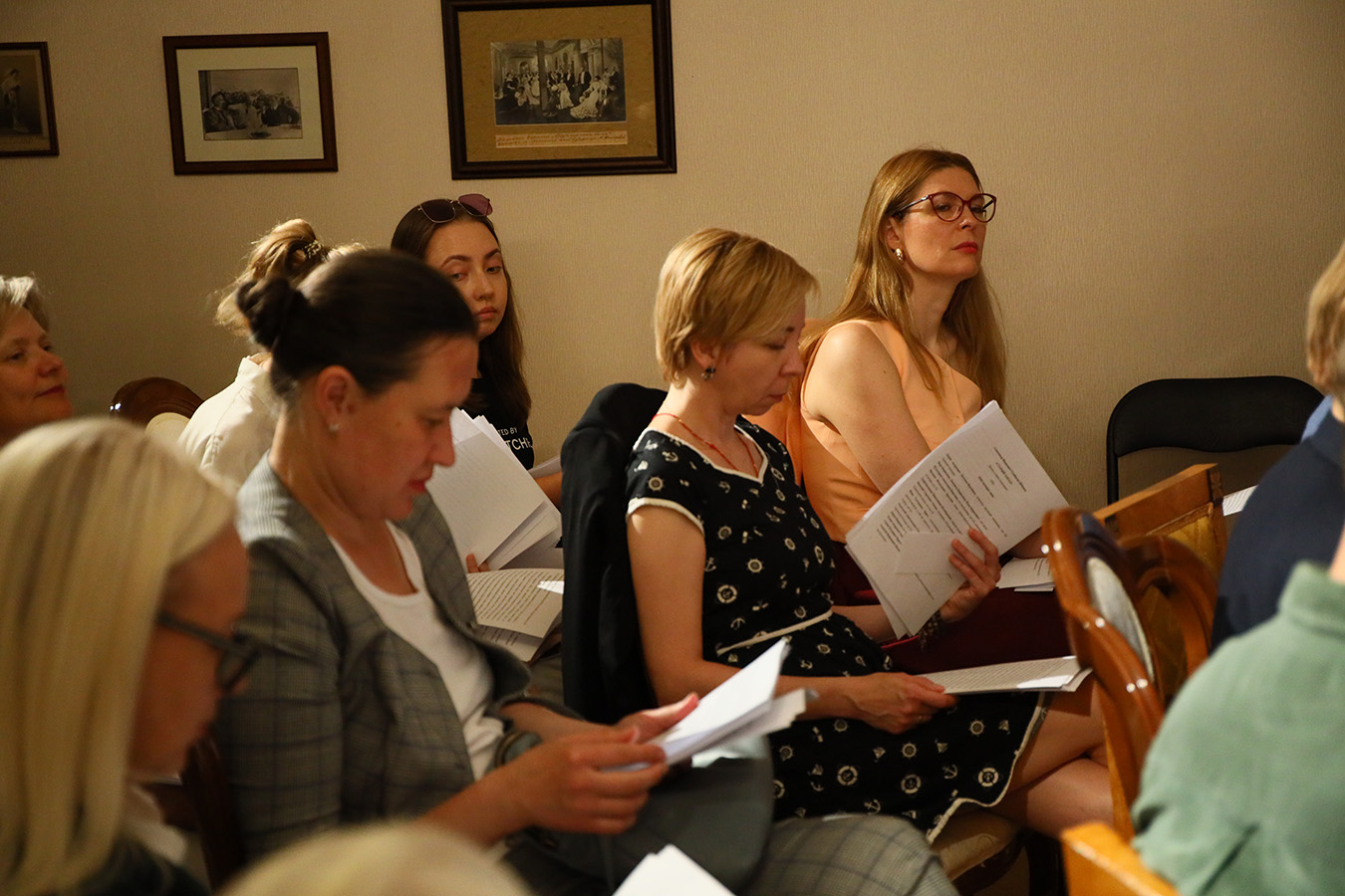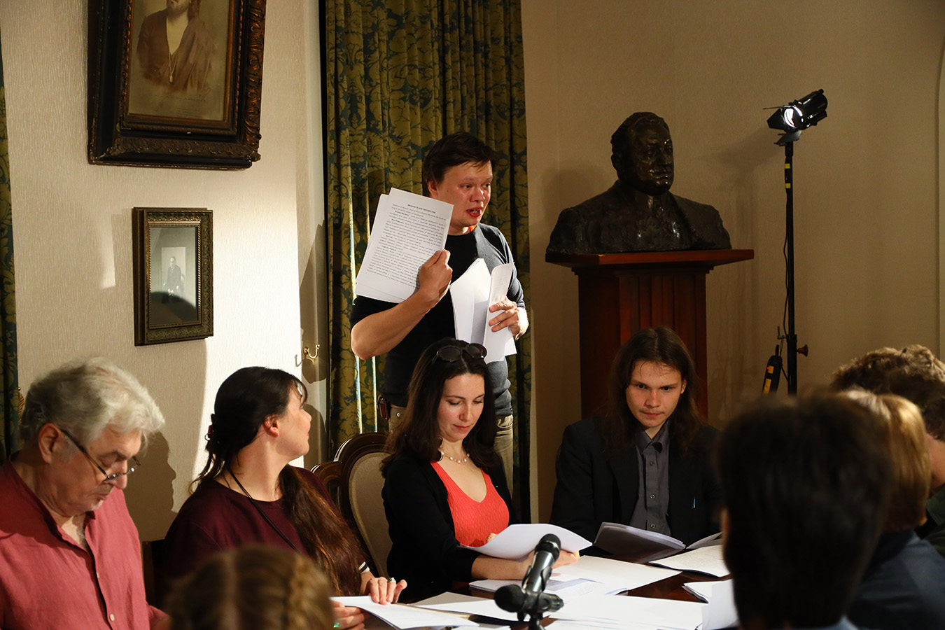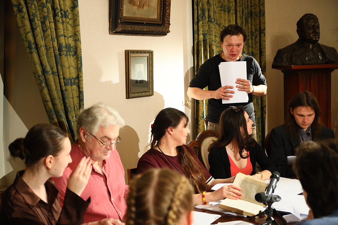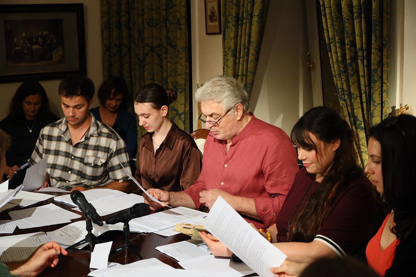 В начале встречи заведующая Мемориальной квартирой Вера Тарасова поближе познакомила гостей вечера с биографией Южина. Вместе со зрителями прочли пьесу и разобрали характеры героев артисты Малого театра Любовь Ещенко, Дарья Новосельцева, Максим Путинцев, Игнатий Кузнецов и заслуженный артист России Александр Титоренко. В качестве режиссёра вечера выступил Станислав Сошников.