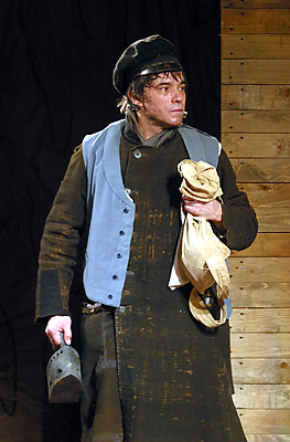 Смерть жены и нищета, в которой Кирилл Кисельников оказался с пятью детьми и старой матерью, загнали его в такую беспросветную нужду, что выхода из нее уже не было видно, что доводило его подчас до смертельного отчаяния. Оттого и тяжел спектакль, что это смертельное отчаяние Александр Коршунов играет с такой психологической силой и точностью, что больно было смотреть. Видеть, как страдает, мучается герой, не в силах спасти умирающих детей. Как бьется с нуждой один на один.