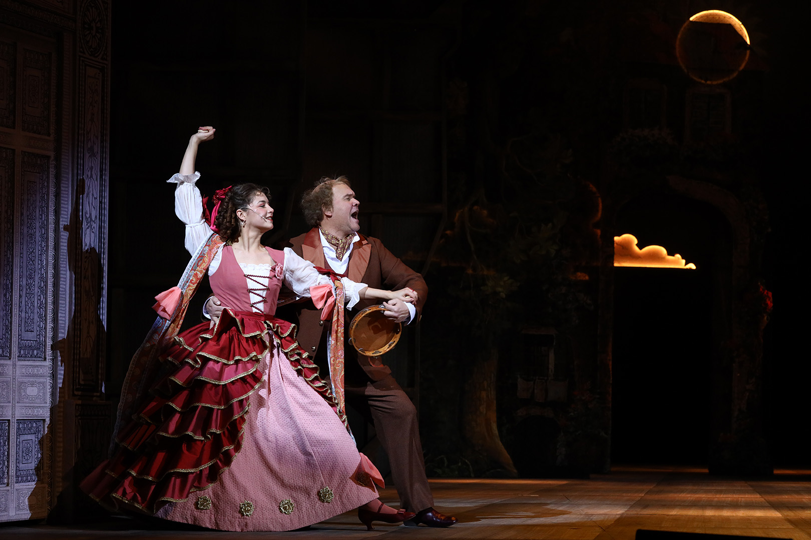 В этом спектакле режиссер Алексей Дубровский выводит на сцену множество персонажей, живущих по законам сценического представления: на сцене находится место шутливым куплетам и танцам, розыгрышам и интригам, а также простодушной хитрости.
