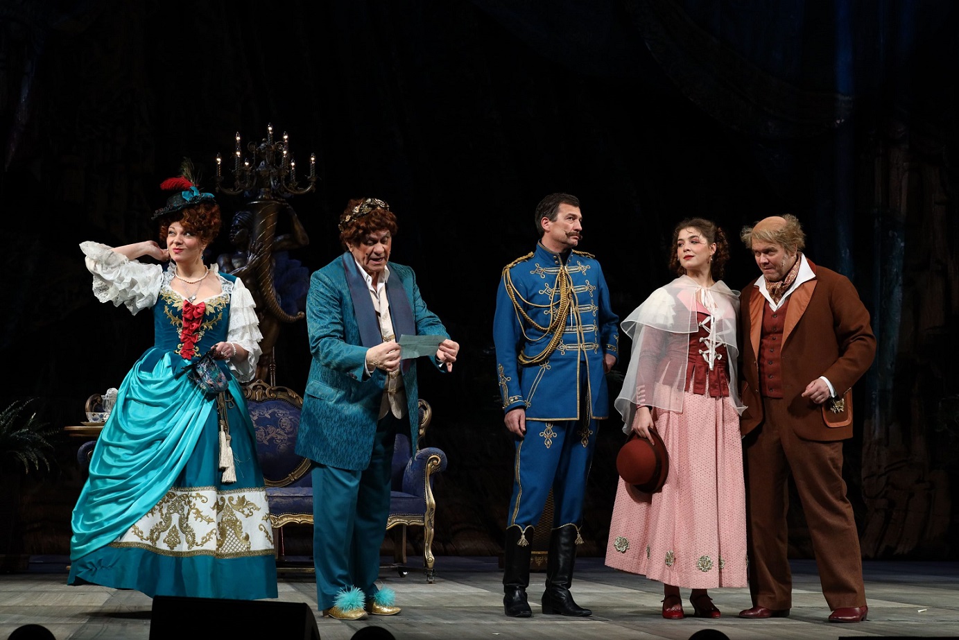 или нет – зритель увидит в спектакле. Водевиль весёлый, наполненный шутками, песнями и танцами. Музыку к постановке написал народный артист России А.В. Чайковский. У него получилось наполнить пространство сцены живостью и смехом, и передать это настроение зрителям.