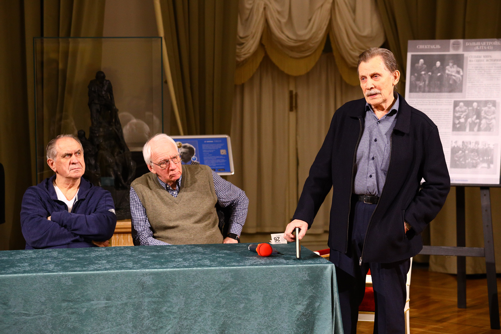6 февраля в 21:20 после спектакля мы приглашаем зрителей спектакля «Большая тройка (Ялта-45)», показ которого в этот день приурочен к 80-летию Ялтинской конференции, на обсуждение постановки. В ней примут участие исполнители главных ролей – Василий Бочкарев, Валерий Афанасьев, Владимир Носик, режиссёр спектакля Андрей Житинкин и главный режиссёр Малого театра Алексей Дубровский.