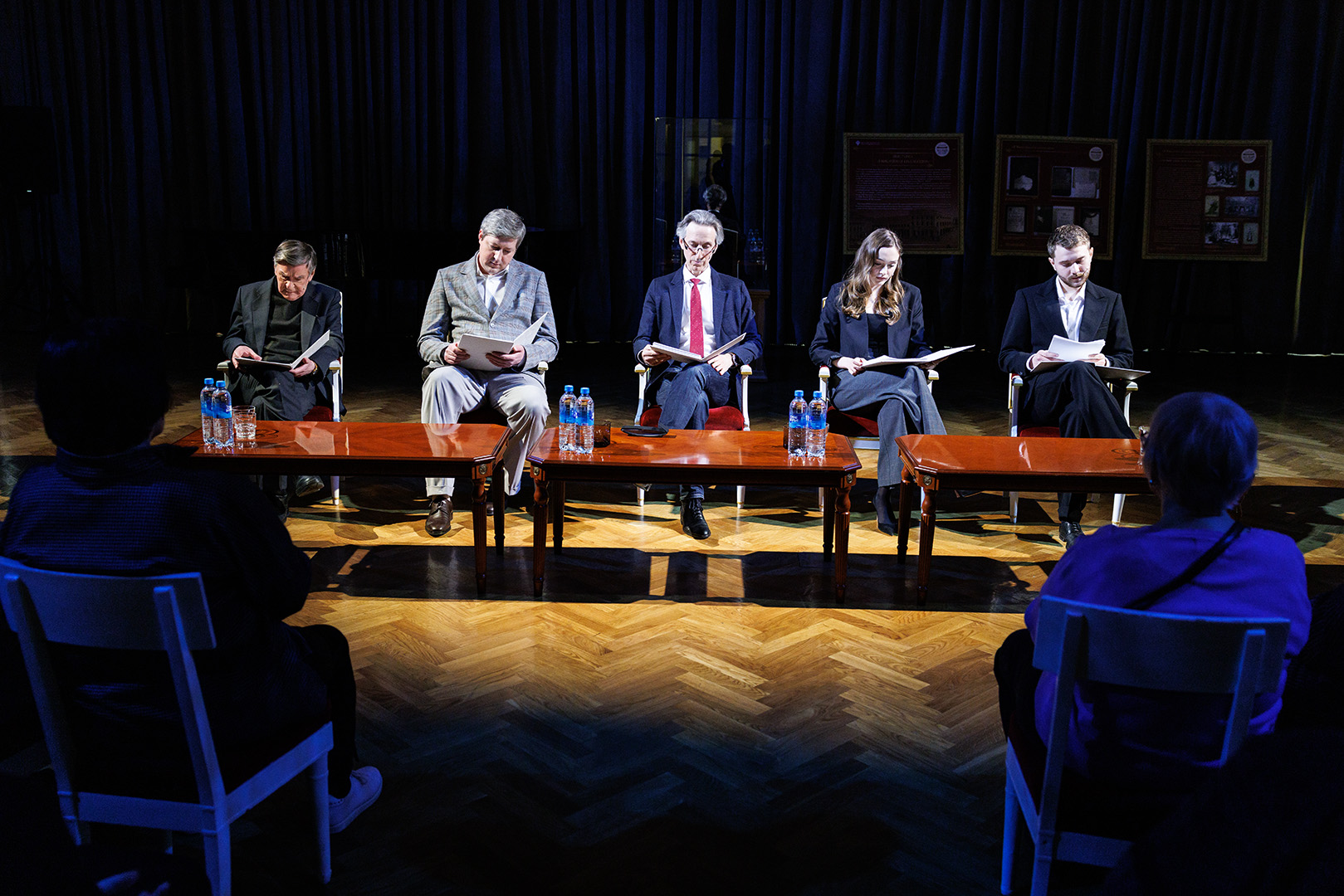 После читки фрагмента пьесы состоялось обсуждение со зрителями, в котором приняли участие главный режиссер Малого театра Алексей Дубровский, ректор ГИТИСа Григорий Заславский, драматург Елена Исаева и автор пьесы Григорий Быстрицкий.