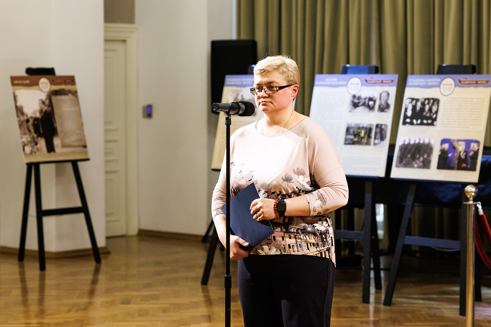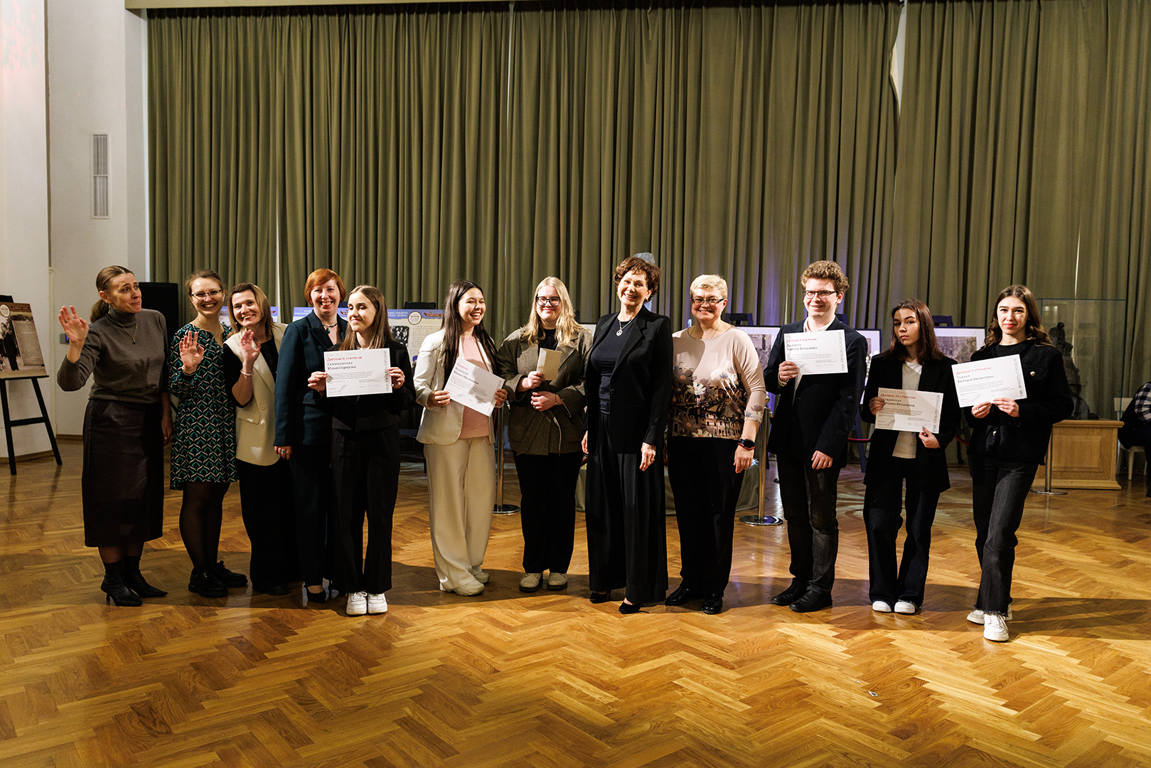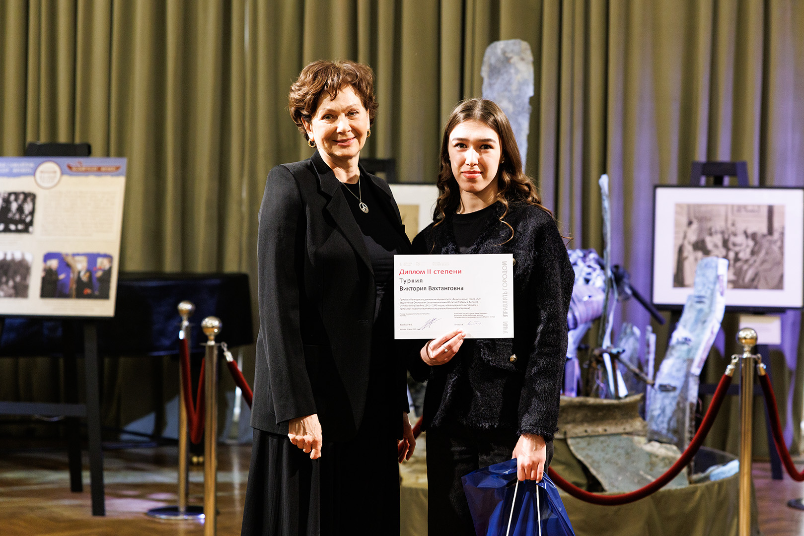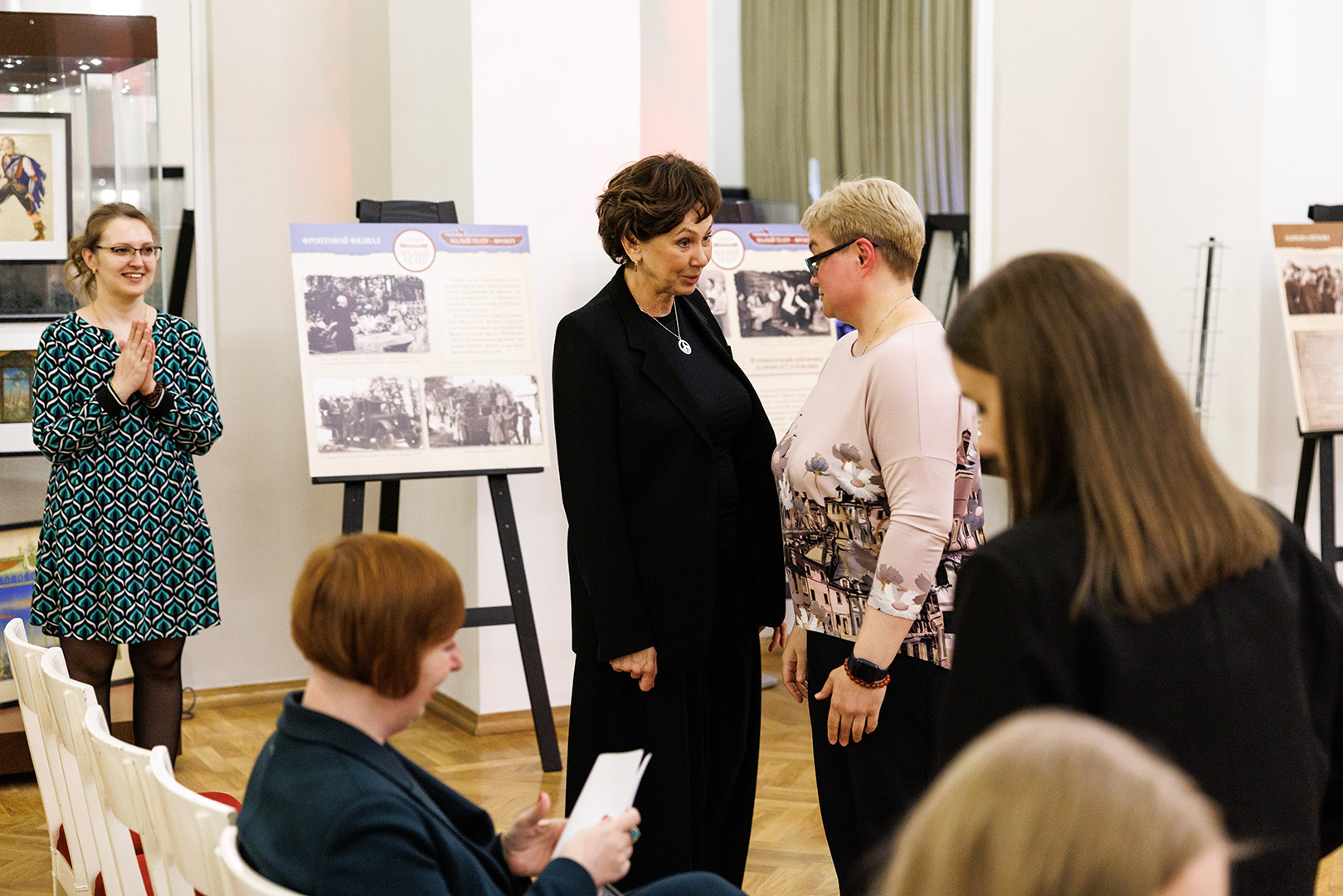 В приветственном слове победителям конкурса сопредседатель организационного комитета конкурса Татьяна Крупенникова, начальник Музейно-информационного центра Малого театра отметила важность проводимой работы и Университетом, и Театром по сохранению исторической памяти, примером чего становятся постановки театра, проводимые выставки «Малый театр – фронту», научные и творческие проекты Университета.