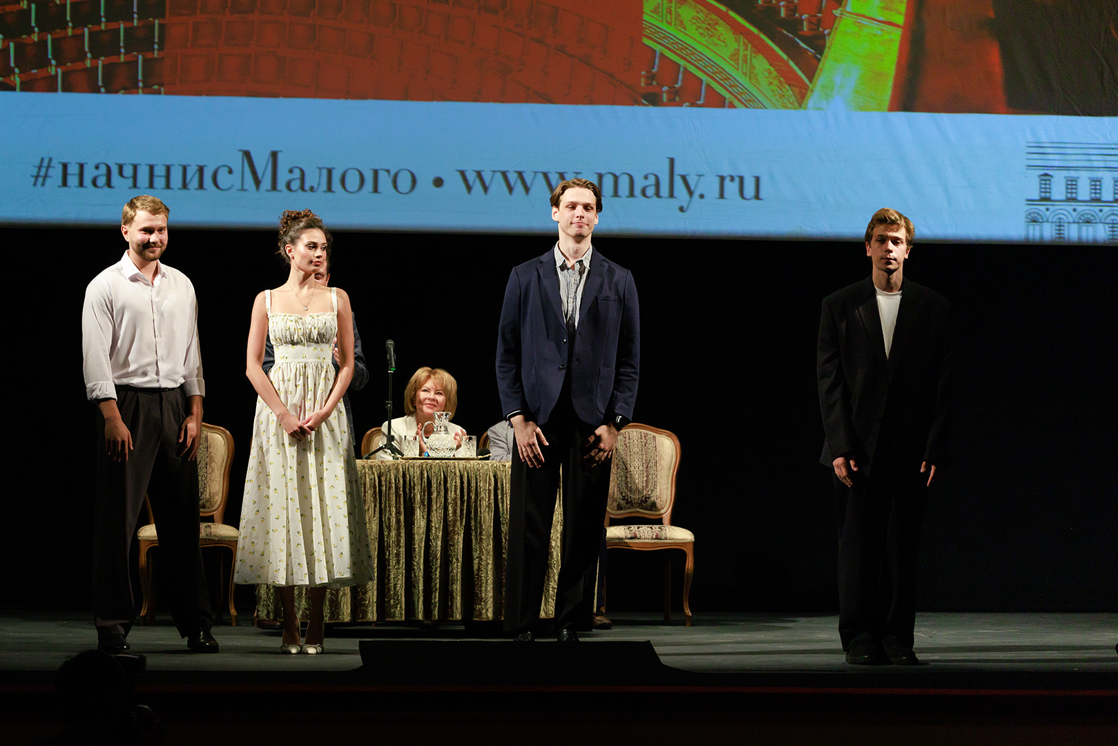 Одним из важных событий дня стало приветствие новых, молодых артистов труппы - четырех выпускников Высшего театрального училища имени М. С. Щепкина: Александры Годованец, Анастасии Ермошиной, Арсения Сидякина и Дениса Косикова. Кроме того, к актерскому коллективу Малого театра присоединилась заслуженная артистка РФ Алла Юганова, Ангелина Стречина и Ксения Лукьянчикова.