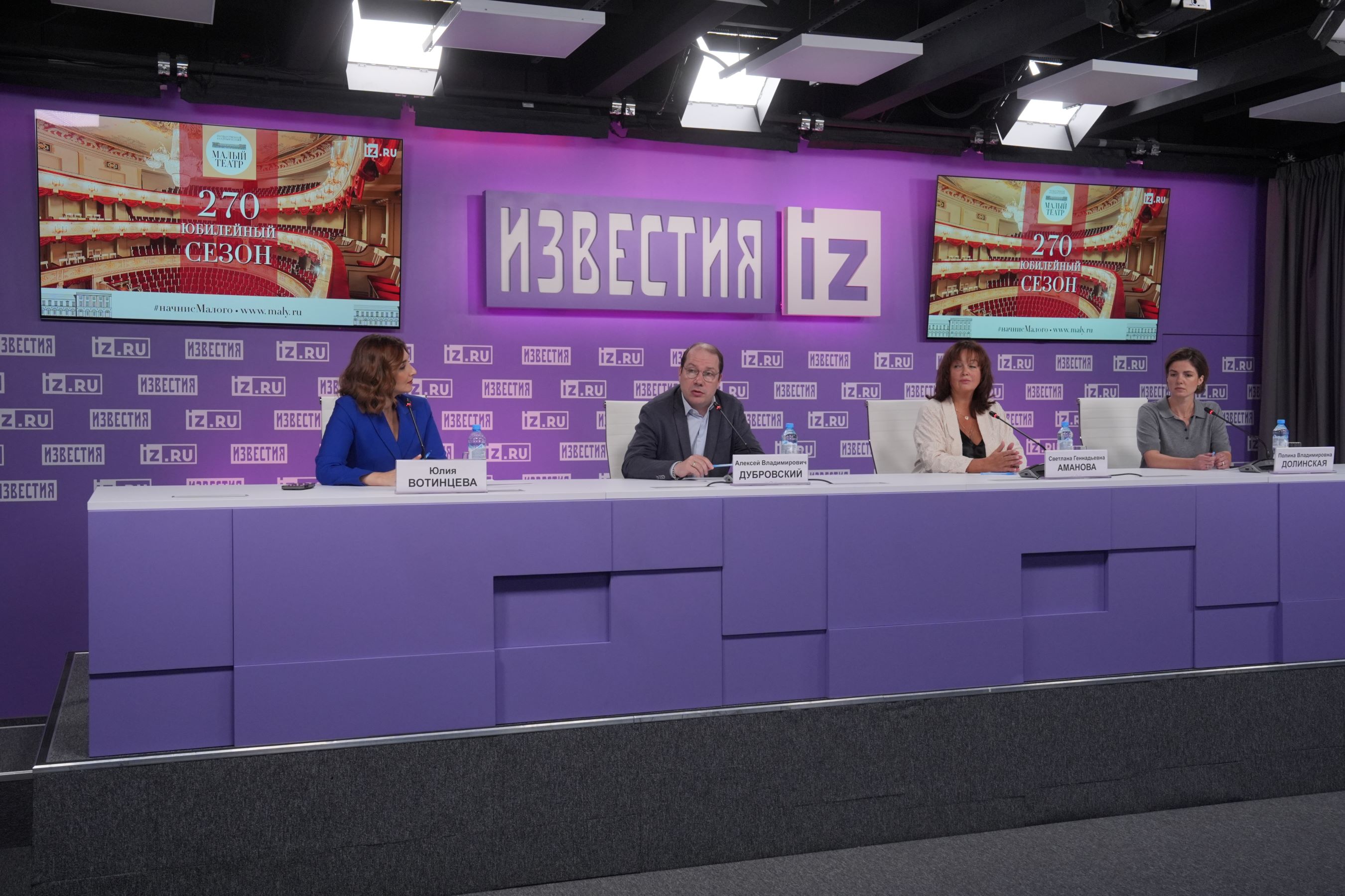 Государственный академический Малый театр готовит для зрителей восемь премьерных спектаклей в новом театральном сезоне. Об этом сообщил главный режиссер Государственного академического Малого театра Алексей Дубровский в пресс-центре МИЦ «Известия» 27 августа в ходе пресс-конференции, посвященной открытию 270-го театрального сезона в этом театре.