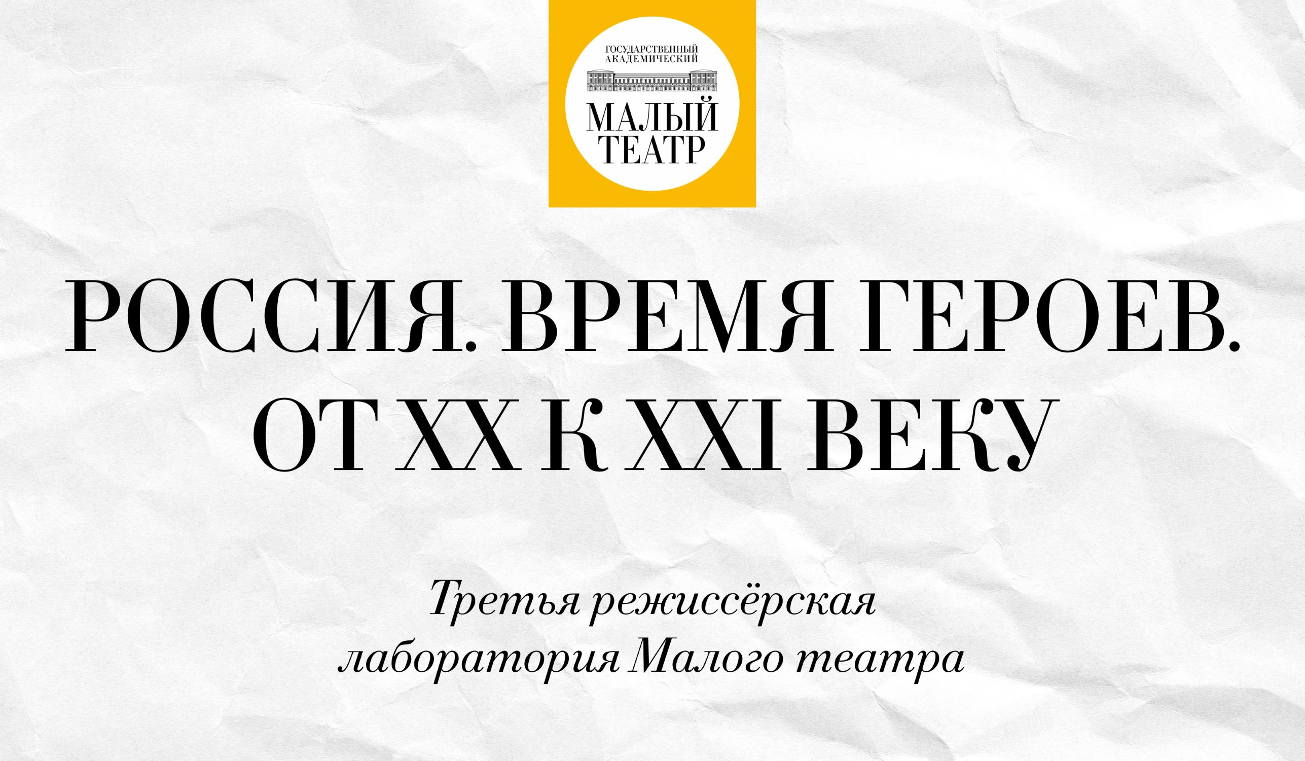 Малый театр приглашает молодых режиссеров (до 45 лет) принять участие в третьей режиссерской лаборатории Малого театра – «Россия. Время героев. От XX к XXI веку». По итогам прошлых лабораторий репертуар театра пополнился новыми спектаклями, среди которых «В чужом пиру похмелье» А.Н. Островского (режиссер Ланьбо Цзяо), «Бесприданница» А.Н. Островского (режиссер Александр Вельмакин), «Белая палатка»» И. Стаднюка (режиссер Ирина Михайленко) и предстоящие в сентябре нового сезона премьеры – «Весьма остроумная и превеселая комедия о виндзорских женушках» У. Шекспира (режиссер Александр Вельмакин) и «Защита Лужина» В. Набокова (режиссер Владимир Данай).