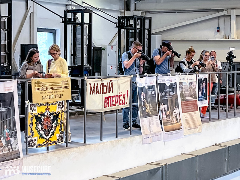 Малый театр — один из немногих, кто имеет полный цикл собственных производств, то есть самостоятельно изготавливает и костюмы, и реквизит, и декорации (но, конечно же, в рамках разумной экономии: сухоцветы и искусственные цветы проще все же купить). Мастерские работают по историческим документам, но стремятся к использованию современных материалов и технологий (то есть костюм, например, должен быть исторически правдив снаружи, но его функционал и поддевы будут прежде всего удобными для носки и ухода за изделиями). Афиши тоже печатаются самостоятельно — а среди них «путешествует» сквозь время и плакат из бязи, расписанный вручную: «Малый вперед!»