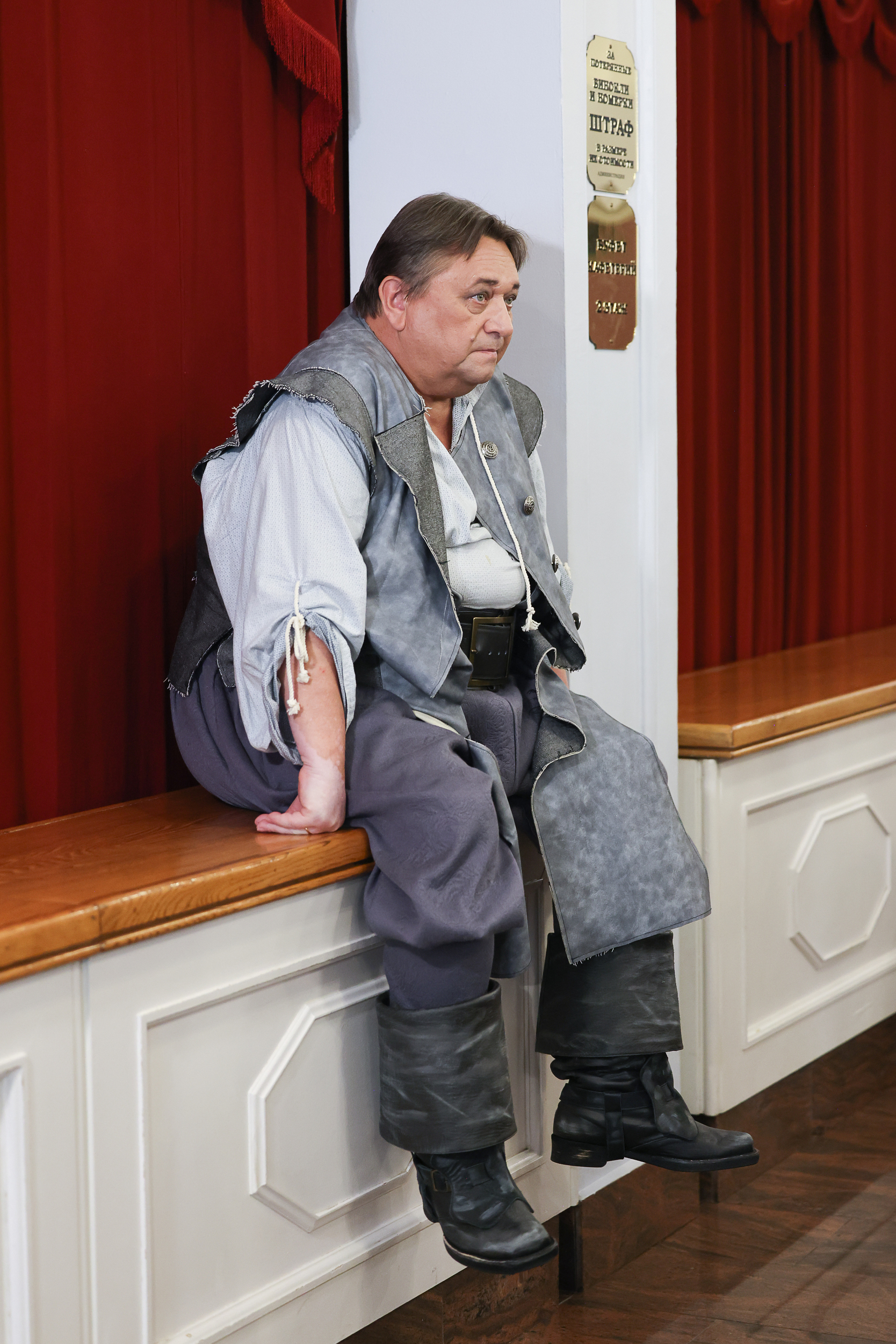 «Виндзорские жёнушки» – это ода радости, где нет ни одного отрицательного героя. Все персонажи добродушные, игривые, где-то нелепые. Если герои и пакостят, они делают это с удовольствием, по доброму. Сэр Фальстаф ведёт себя, как ребенок, но не вкладывает в свои действия ничего негативного, он хочет поиграть, пошалить. Он будто возвращается в детство, когда не было ответственности и всё было проще», – режиссёр Александр Вельмакин.