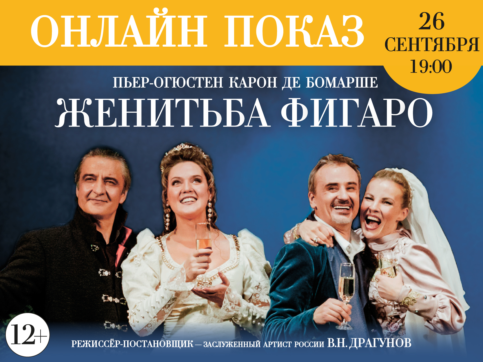 Как мы и обещали, мы дадим еще одну возможность проститься с постановкой: 26 сентября состоится онлайн-показ спектакля «Женитьба Фигаро» Пьера-Огюстена Карона де Бомарше . В 19:00 предлагаем вам «откупорить шампанского бутылку иль перечесть «Женитьбу Фигаро», а точнее – посмотреть видеозапись постановки и насладиться игрой любимых артистов.
