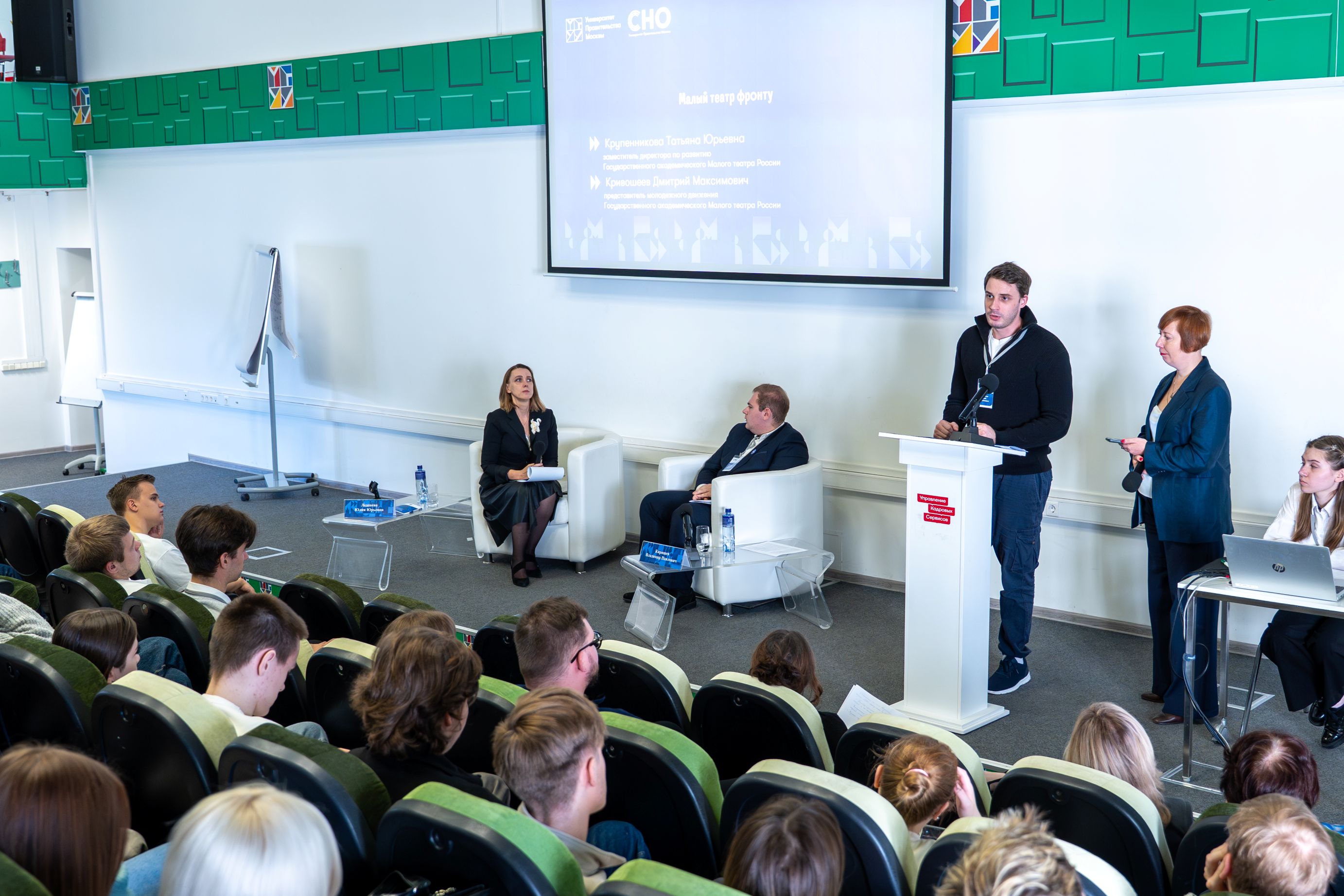 2 октября на форуме выступили заместитель директора Малого театра по развитию Татьяна Крупенникова и артист Малого театра, представитель Молодежного совета Дмитрий Кривошеев. Они рассказали о нашей выставке к 80-летию Победы «Малый театр — фронту» (главный экспонат — фрагмент самолета — располагается в Новом Щепкинском в фойе), о значимости выставки для истории театра, о связи поколений, о том почитании и глубоком уважении, которые