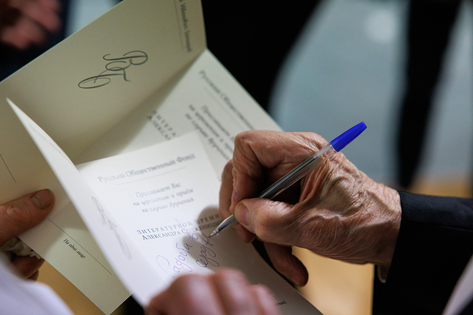 Тридцать третья церемония вручения премии, учрежденной Солженицыным для награждения писателей и деятелей культуры, прошла в доме Русского зарубежья имени Александра Солженицына в Москве. Вручение Солженицынской премии - всегда событие в жизни осенней Москвы. На церемонию пришли прежние лауреаты премии, писатели, критики, литературоведы, режиссеры, издатели. Имя нового лауреата было известно - но выглядел он совсем не на свои 82, прошел в зал, сел в первый ряд, избегая парадных разговоров.