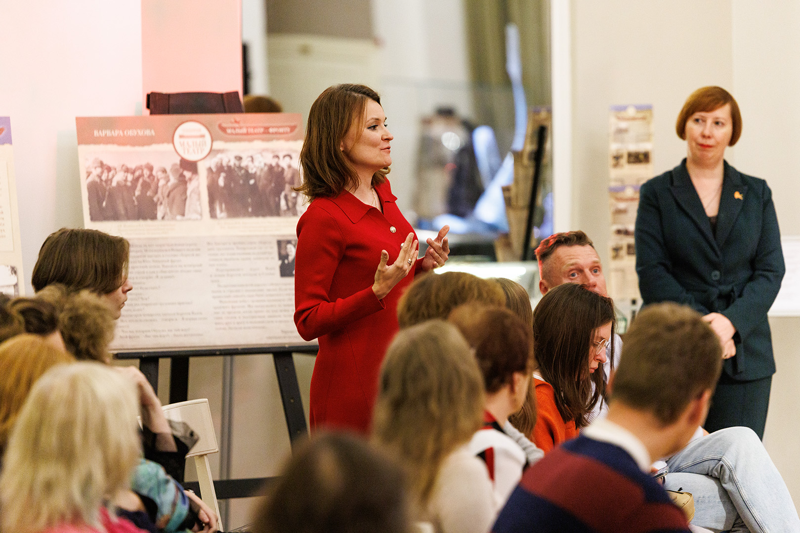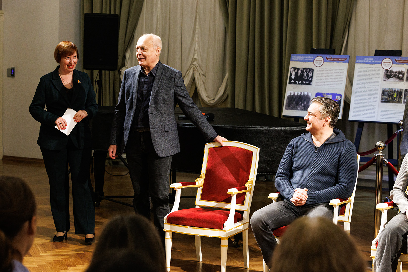 3 октября после спектакля «Пётр I» Д.С.Мережковского в Новом Щепкинском фойе прошла встреча из цикла «Диалог времён». В рамках данной программы наши зрители имеют возможность встретиться с создателями спектакля, обсудить увиденную постановку и проследить параллели с сегодняшним днём. В первую очередь встречи ориентированы на молодое поколение зрителей.