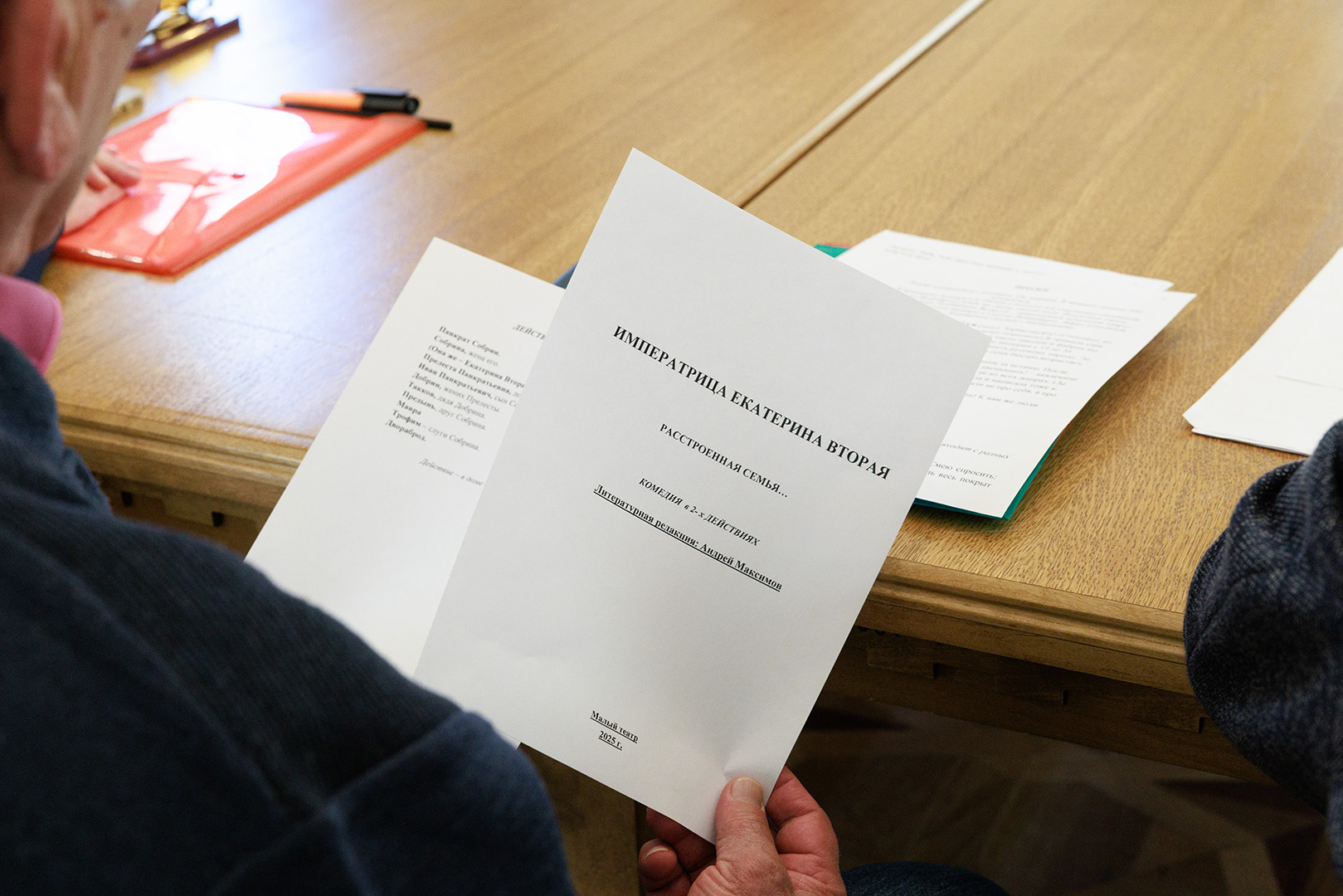 По традиции команду спектакля поприветствовали директор Малого театра Тамара Михайлова и главный режиссёр Алексей Дубровский и пожелали плодотворной работы над спектаклем. Алексей Владимирович отметил, что недавно Владимир Владимирович Путин издал Указ о праздновании 300-летия со дня рождения Екатерины Второй в 2029 году.