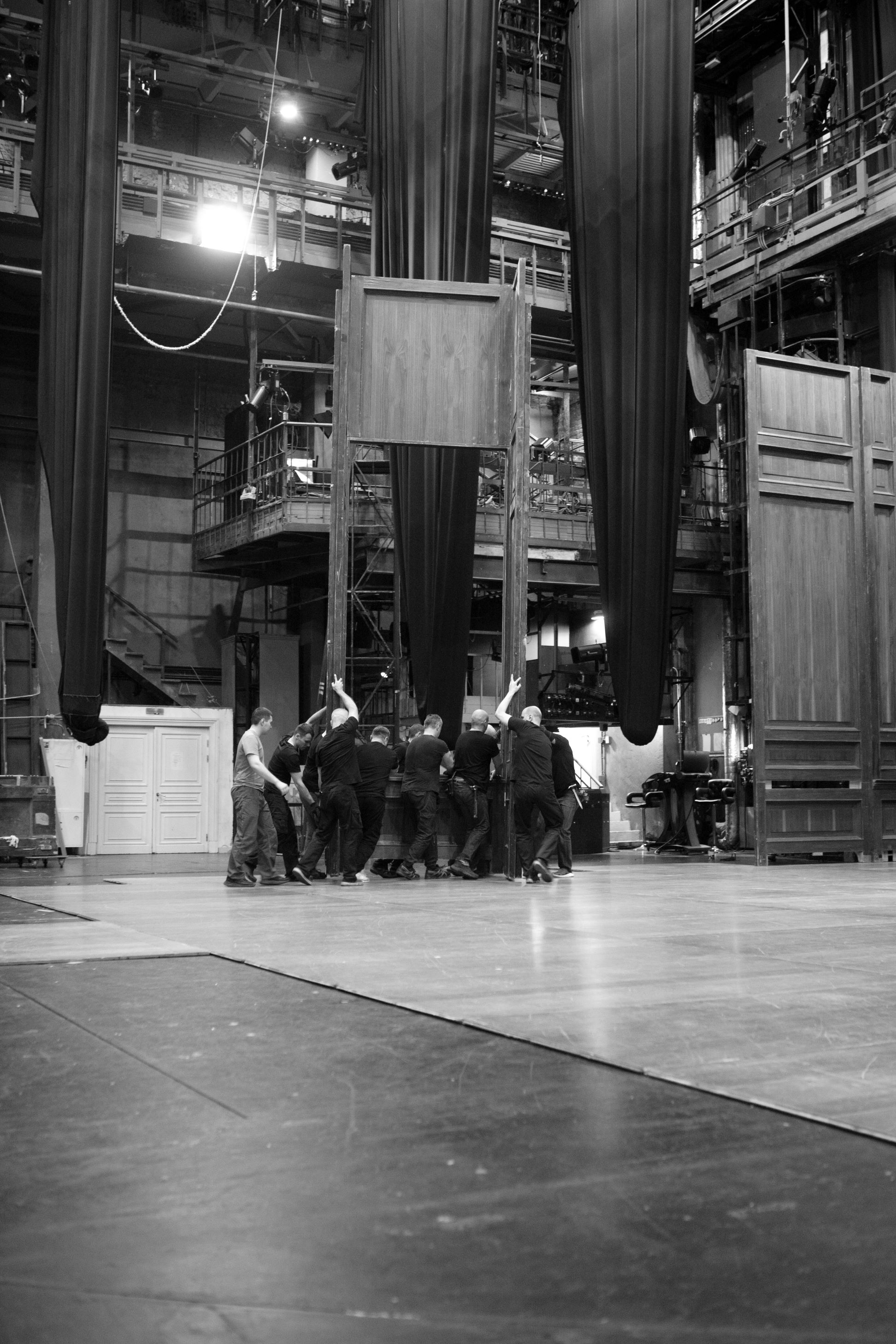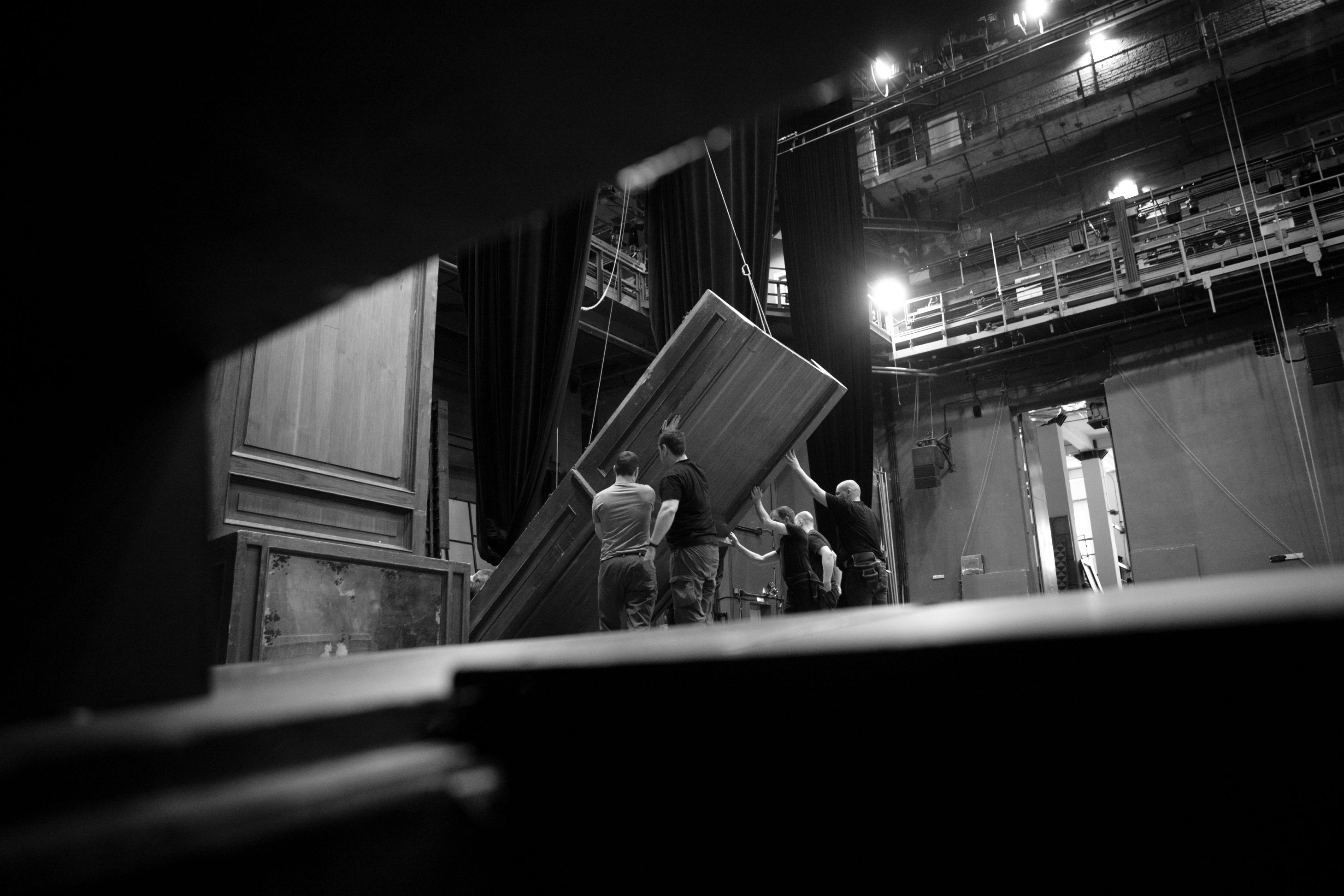 О. А.: В спектакле в какой-то момент слуги медленно-медленно выносят стулья и ставят их на сцене не в ряд, а в кучу какую-то. Что это означает?