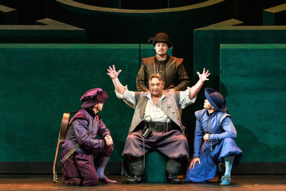 Но главный "интриган" - на месте. Роль рыцаря Джона Фальстафа исполняет Александр Клюквин. Его добродушный герой - разорившийся плут, который искренне любит шалости и лихие рыцарские загулы. В той легкости, с которой он относится к долгам и обидам, чувствуется размах души: ведь настоящий рыцарь не может не жить на широкую ногу. Чтобы поправить свои дела, он затевает совсем не благородную аферу и прикидывается влюбленным в двух богатых виндзорских дам.