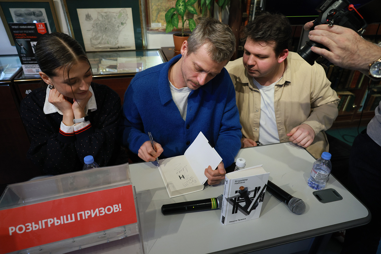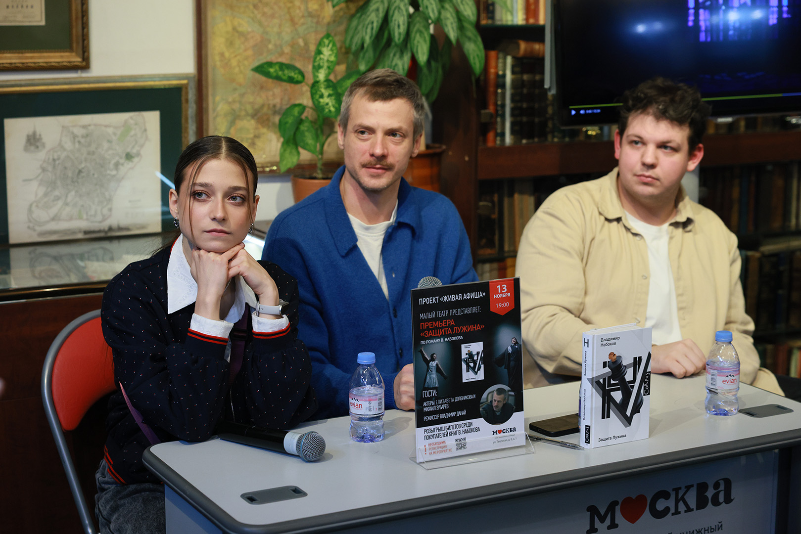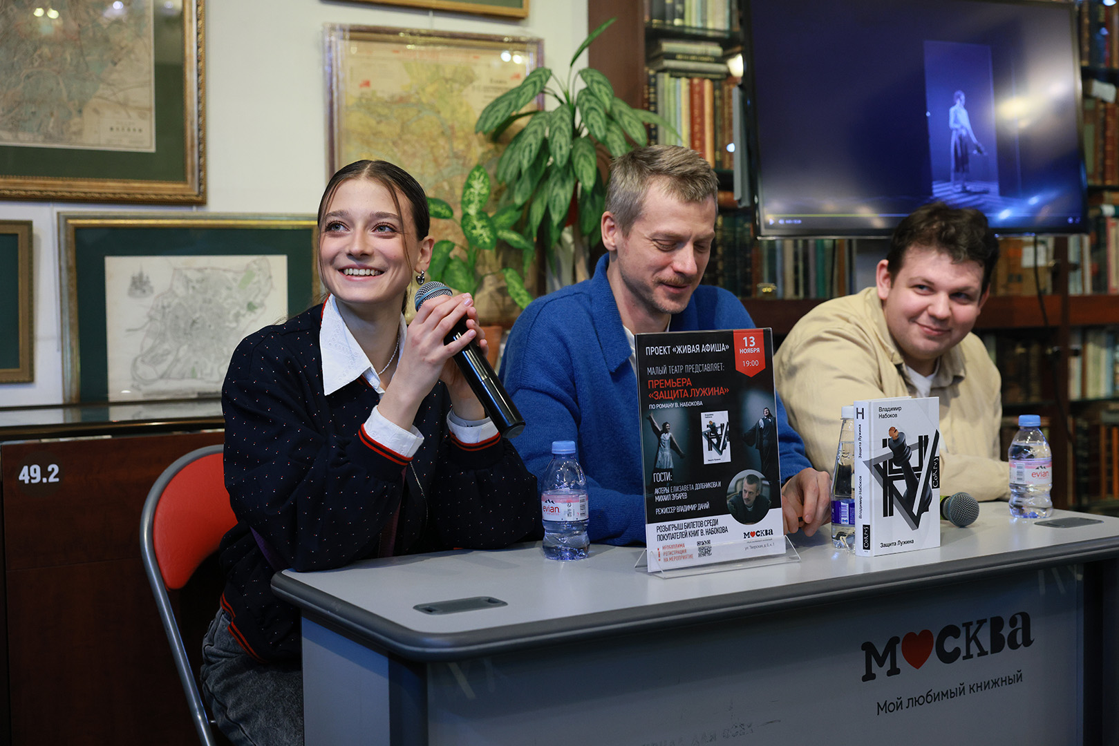 13 ноября в книжном магазине «Москва» на Тверской состоялась встреча читателей и театралов с создателями спектакля «Защита Лужина» по одноименному роману Владимира Набокова.