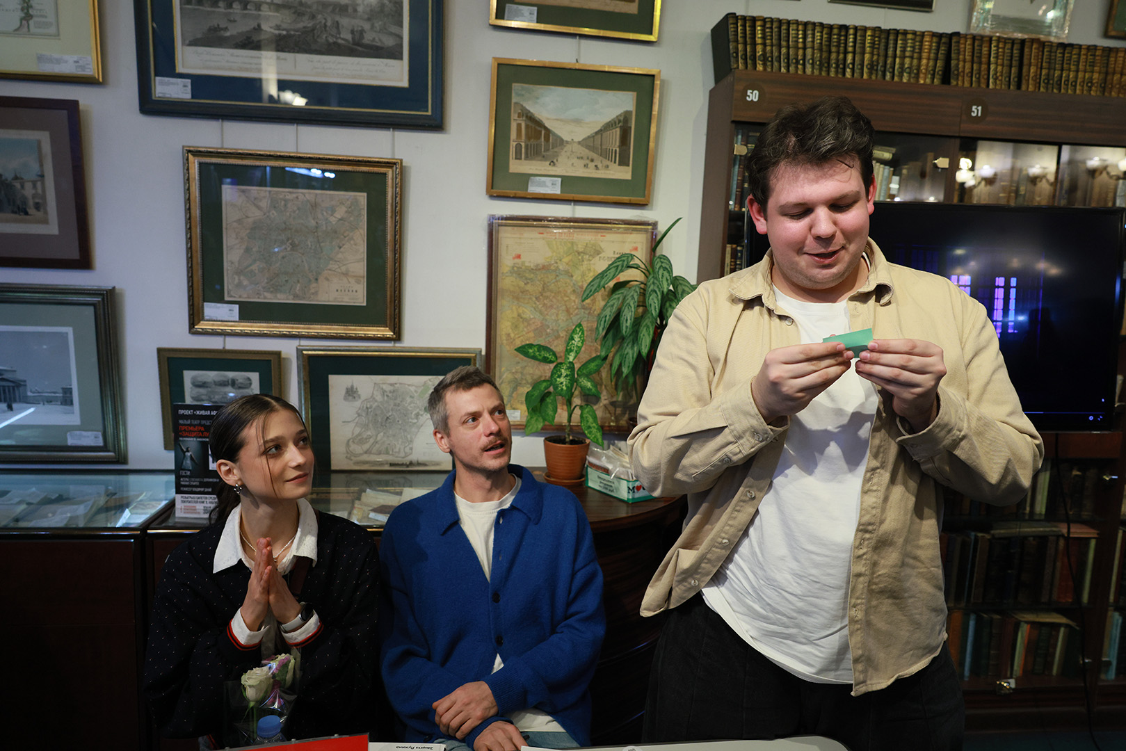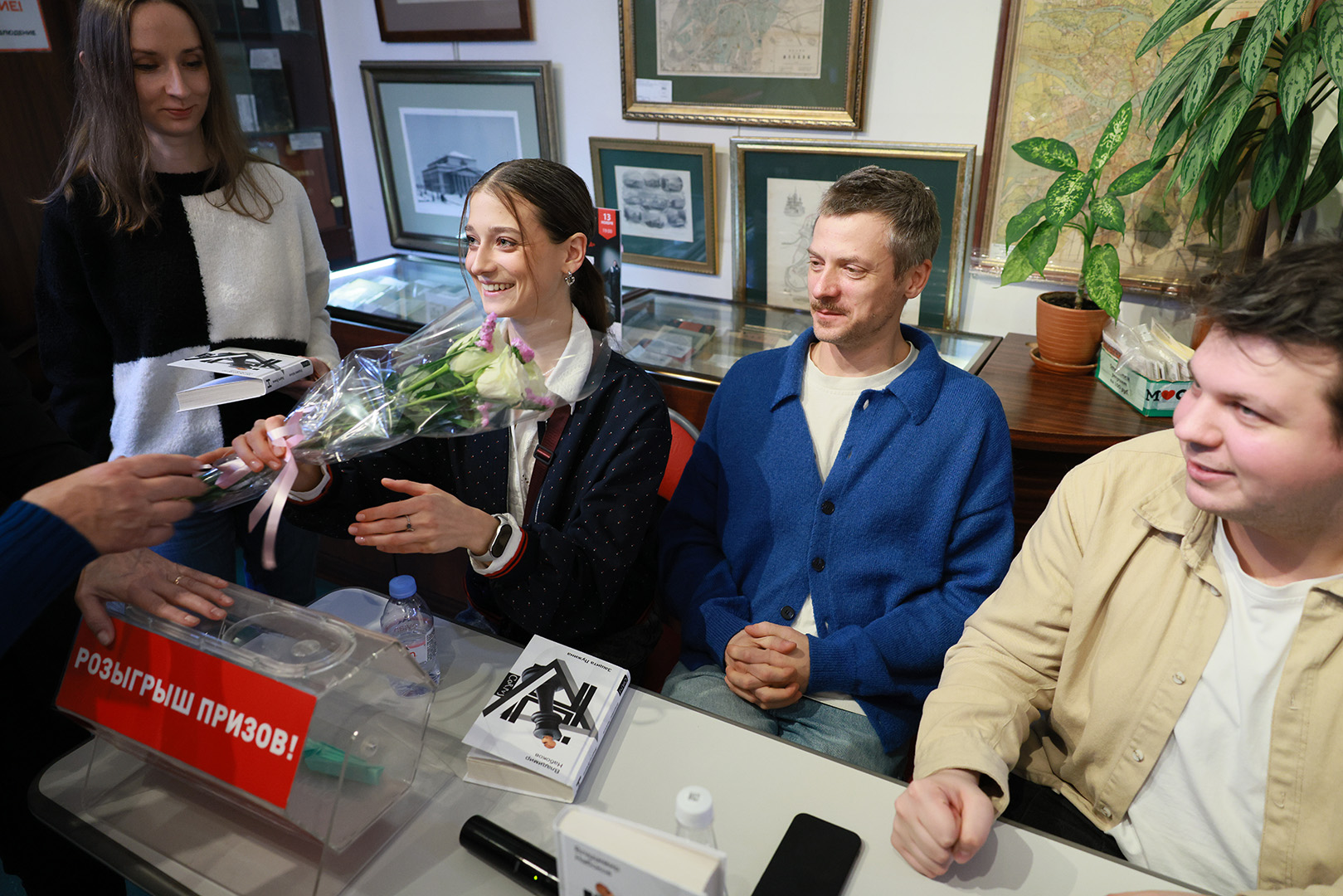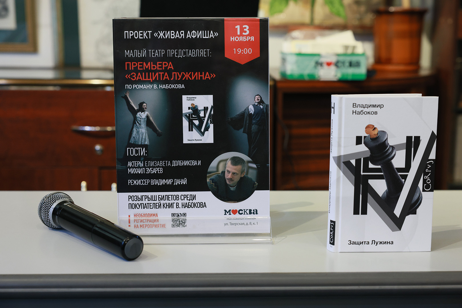 13 ноября в книжном магазине «Москва» на Тверской состоялась встреча читателей и театралов с создателями спектакля «Защита Лужина» по одноименному роману Владимира Набокова.