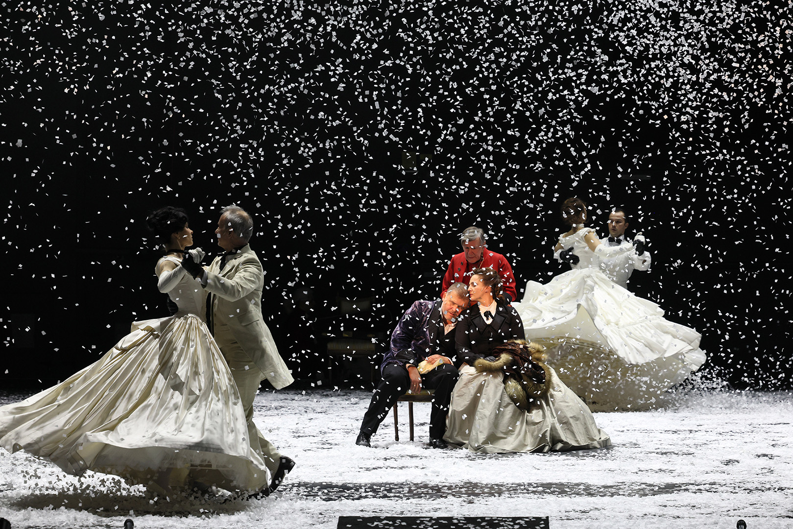 Так что история построена вокруг отдельного явления российской культуры — аристократического общества. Здесь есть высокий этический сюжет. Здесь люди особого внутреннего мироустройства, особого этического склада. И если Анна Аркадьевна влюбилась, то это навсегда, это единственная, первая, настоящая любовь, и на алтарь чувства кладётся всё. То же можно сказать и про Вронского. В нашем спектакле к их истории присоединяется и сам Каренин. Получается неразрывный треугольник: все друг с другом объединены сильным чувством, попрать которое не позволяет ни воспитание, ни вера в высокое предназначение этого чувства.