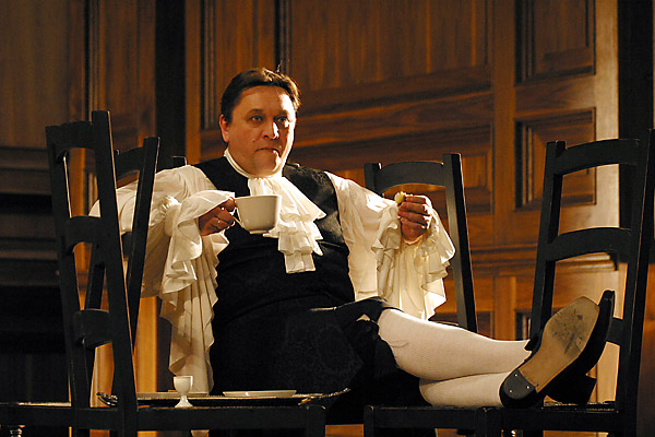 Если кому-то на ум вдруг придет чудаковатая идея выявить самого радостного в Москве театрального режиссера, то такой конкурс почти наверняка выиграет Сергей Женовач. Не то что бы он был сильно остроумен, не то что бы ставил себе целью потешить честной народ, но ощущение необыкновенной полноты бытия и гармоничной упорядоченности мира возникает от самых разных его спектаклей, на каких бы литературных текстах они не основывались. Выразить это тихое благодатное чувство получилось у Женовача даже с таким желчным господином, как Александр Сергеевич Грибоедов, чью комедию «Горе от ума» он поставил несколько лет назад в Малом театре. Ну а с Мольером все вышло и того проще.