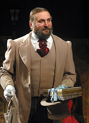 Новое воплощение образа купца Боровцова можно назвать более подробным. Самое главное, Кознову удалось найти свои интонации для каждой фразы, и лишь дважды я поймал себя на том, что уловил интонационное сходство с предыдущим исполнением. Кроме того, с удовольствием отмечу особенную динамику образа. Возможно, у нового Пуда Кузьмича чуточку убавилось значительности и самоуверенности, но добавилось купеческой лихости и живости. Правдивость исполнения Дмитрия Кознова зрители оценили. Уже во второй картине одна из зрительниц, сидевших рядом со мной не выдержала и сказала: «Господи, и ведь ничего не изменилось. Вот такие они мужики и сейчас!». Что можно к этому добавить? Лишь пожелания играть как можно больше!