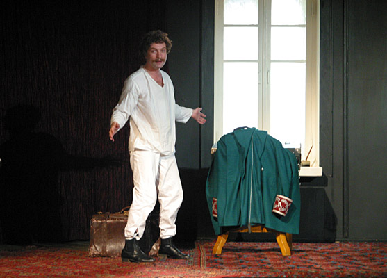 Если чем они и поражают, так это своей дикцией - что уж тут, лучше артистов Малого никто, включая дикторов ЦТ, в стране по-русски не говорит. Мало кому удастся произнести - именно произнести, а не просвистеть - «засосаны насмерть». А попробуйте выговорить «Антиох Елпидифорыч» тридцать раз подряд. Чувства меры и достоинства здешним актерам тоже не занимать - похоже, в Щепкинском училище, где фабрикуется труппа Малого, студентам имплантируют какой-то специальный орган. Вот и играют они (Дмитрий Зеничев - Тарелкина, Сергей Еремеев - Расплюева) так, словно на тормоз жмут, хотя видно же, что вполне могли бы уложить зал на лопатки; но столько в этом их самоограничении достоинства, что академичный и занудный, в сущности, спектакль начинает выглядеть очень даже убедительным.