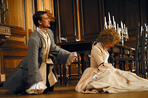 И таких подчеркнуто вставных номеров немало в спектакле. В откровенно буффонадной манере играет Клеанта, возлюбленного Анжелики, признанный Чацкий Малого театра Глеб Подгородинский. Поначалу актера и не узнаешь, Клеант столь окарикатурен и шаржирован, что в какой-то момент думаешь: перебор, но потом понимаешь, что постановщик и исполнитель сполна прониклись авторским мироощущением и услышали - сквозь пласты веков - смех самого г-на Мольера, задорный и едкий.