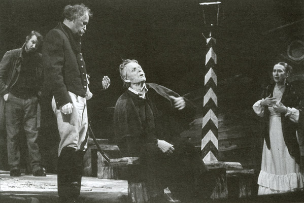 Артист, отметивший недавно свое 80-летие, играет роль чиновника Михея Михеевича Крутицкого, тайного ростовщика, заболевшего маниакальной страстью к деньгам, заморившего голодом жену и племянницу да и себя самого.