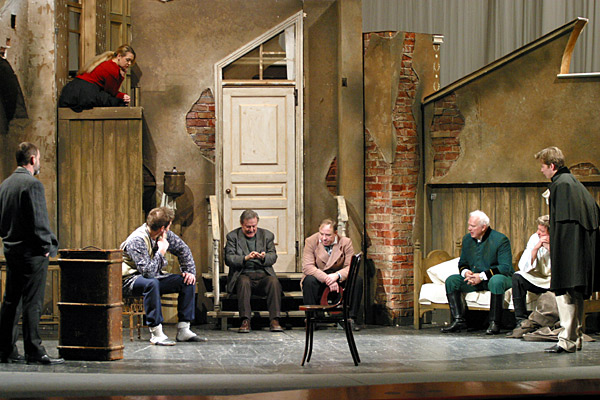 Если бы мы не нравились зрителям, нас давно бы уже скушали. На худой конец, открыли бы здесь какое-то варьете. А мы живем. Играем тут классику. Играем так, чтобы зритель не путался, а школьники не думали, что Чехов писал пьесы с названиями, которые мне и вспоминать не хочется. Мы, как пограничники, стоим на рубеже. Я за то, чтобы не поганили, не портили. Хотите что-то сказать на современную тему — напишите новую пьесу и посмотрите, будут на вас ходить или не будут.
