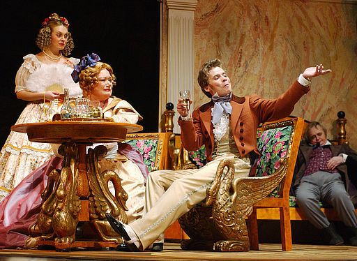 Впрочем, говорить о новой версии здесь не совсем корректно. Режиссер постарался максимально самоустраниться из спектакля, не позволяя себе ни малейшего отступления от буквы автора, ни какой бы то ни было вольности в интерпретации текста, ни собственного взгляда на пьесу. И того же потребовал от актеров. Получился наиклассичнейший из классических «Ревизоров». Чтобы представить себе, как выглядит спектакль, не обязательно идти в театр. Достаточно вообразить себе иллюстрацию из школьной хрестоматии: зеленые чиновничьи мундиры, удивленно и подобострастно выпученные глаза Городничего, взбитый хохолок разряженного по петербургской моде худосочного фитюльки Хлестакова. В Малом все именно так — предсказуемо, добротно и основательно.