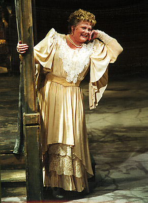 А раньше была сыграна забавная своей отвагой Купавина в «Волках и овцах». Существо наивное, но не лишенное своеобразной настойчивости, она упрямо вникала в дела имения, ничего в них не смысля и пряча растерянность за стеклами вряд ли нужных ей для жизни очков. Так же смешна и отважна ее попытка обольстить Беркутова, ради чего будуар преображался в восточный шатер, а сама Евлампия Николаевна наряжалась Шемаханской царицей. Эта пряная карнавальность помогала плодотворности женских мечтаний.