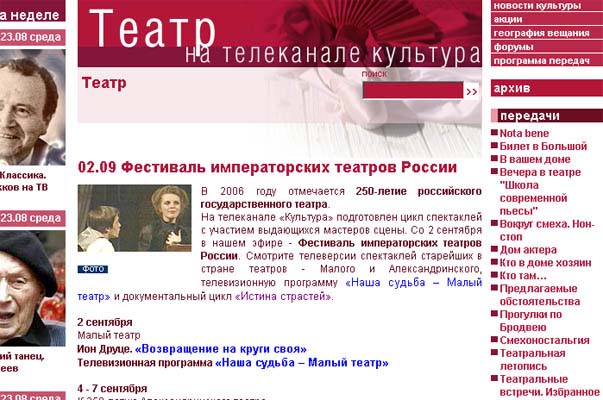 В 2006 году отмечается 250-летие российского государственного театра. На телеканале