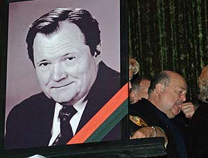 …Будто сам театр не хотел его отпускать от себя. Уже за секунду до того, как должны были вынести гроб, похоронный автобус «Мерседес» напрочь отказался заводиться. Зажигание «чирк-чирк». Мужикам пришлось подтолкнуть махину, чтобы с толкача… И тут в фойе трубачи спешно заиграли Шопена. Аплодисменты заглушили молотки Большого театра. Гроб погрузили, и три автобуса двинулись до церкви в Брюсовом переулке, а потом и на Кунцевское кладбище.