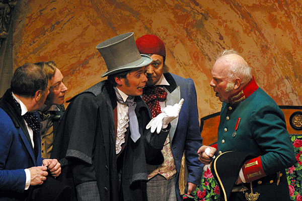 Нынешний спектакль поставил художественный руководитель театра Юрий Соломин. Когда-то, совсем молодым, он играл Хлестакова с Городничим - Игорем Ильинским. Сегодня он решил обозначить новые акценты в старой пьесе. Впрочем, идея интерпретации, перетолкования текста кажется ему настолько чуждой, что он формулирует ее самым прямодушным образом - мол, сыграй, как написано у гения, и дело в шляпе. Написанное у классика, правда, в разное время и совершенно по-разному ставили Всеволод Мейерхольд и Константин Станиславский, Матиас Лагхофф и Валерий Фокин, Владимир Клименко (Клим) и Владимир Мирзоев. Но блюститель традиций русского театра Юрий Соломин по сей день убежден, что любая интерпретация только вредит оригиналу и стоит внимательно прочесть пьесу, как вся она тут же раскроет свои несметные и очевидные дары.