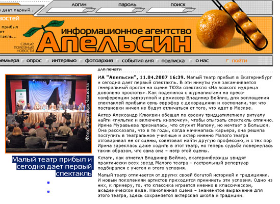 Предлагаем вниманию читателей еще одну подборку материалов о гастролях Малого театра в Екатеринбурге…