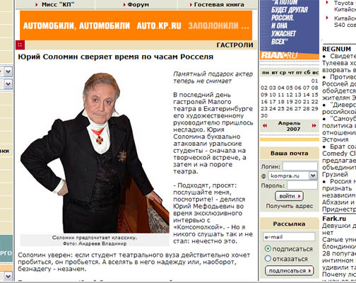 В последний день гастролей Малого театра в Екатеринбурге его художественному руководителю пришлось несладко. Юрия Соломина буквально атаковали уральские студенты — сначала на творческой встрече, а затем и на пороге театра.