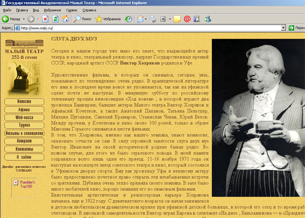 Викторе Хохрякове, вышедшая в «Вечерней Уфе» 24 августа нынешнего года, размещена на официальном сайте московского Малого театра, в котором наш земляк много лет работал актером и режиссером.