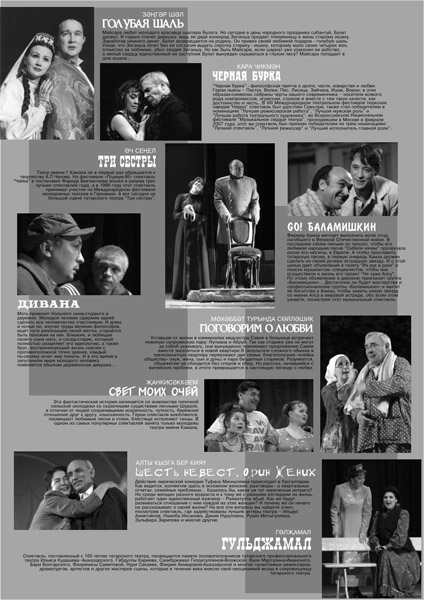 В 2006 году Татарский Государственный академический театр имени Г. Камала отметил свое столетие. 22 декабря 1906 года в Казани состоялся первый общедоступный спектакль на татарском языке. Этот день считается датой рождения татарского национального театра. С 1907 по 1918 год театр существует как труппа «Сайяр» («Передвижная»). В 1926 году театр получает статус академического – одним из первых среди национальных театров СССР. С 1939 года носит имя основоположника татарской драматургии Галиасгара Камала. С 1966 по 2002 год главным режиссером театра работает народный артист СССР, лауреат Государственных премий России и Татарстана Марсель Салимжанов. В 2001 году смертельно больной режиссер, выведший театр в лидеры национальных коллективов страны, становится лауреатом премии «Золотая маска» в номинации «За честь и достоинство». С 2002 года театром руководит Фарид Бикчантаев, заслуженный деятель искусств РТ, лауреат Государственной премии имени Г. Тукая, с 2008 года – член жюри национальной театральной премии «Золотая маска».