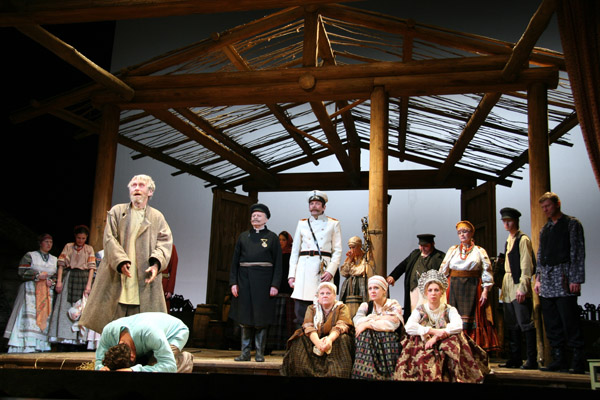 ... Когда открывается занавес, в проеме сцены — распахнувшееся во всю высь небо, созданное вместе с крестьянским двором, избой и силуэтом деревни на горизонте художником Александром Глазуновым. Оно будет и над летней землей, и над зимней, над любовными страстями людей и душераздирающими их преступлениями. Когда-то великий философ заметил, что знает только два удивляющих его чуда в жизни — «звездное небо надо мной и нравственный закон во мне». Однако что ждет человека и человечество, общество и страну, вознамерившиеся этот закон отменить, поставив вместо него всевластие собственности, «комфорта» и чистогана?