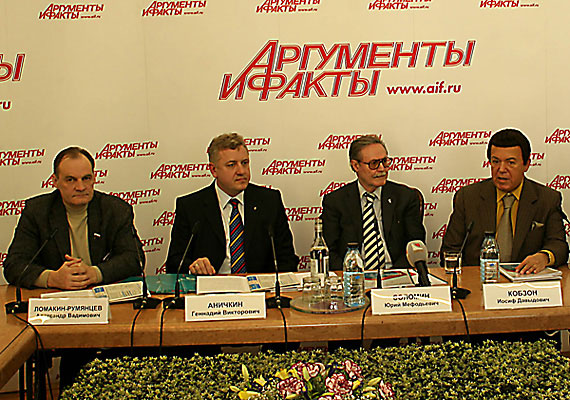 23 апреля в пресс-центре «Аргументы и Факты» состоялась пресс-конференция с участием «первых лиц» проекта «Международная премия «Филантроп»: народного артиста СССР Ю.М.Соломина, народного артиста СССР И.Д.Кобзона, председателя Всероссийского общества инвалидов А.В.Ломакина-Румянцева, префекта ЦАО Москвы С.Л.Байдакова.