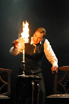 В «Медведе» также три действующих лица. Конечно, все здесь держится на главном персонаже — Смирнове. Заслуженный артист России Виталий Петров играет так красочно, что невольно вспоминается история создания этой пьесы.