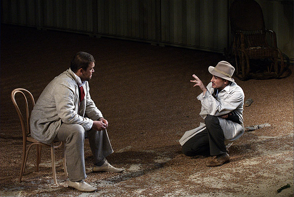 Резонером в спектакле выступает мрачная, как «дитя подземелья», Лиза. Она - единственная, кто чувствует катастрофу и знает то, что давно не новость: жизнь полна грязи, ненависти и ужаса, люди - звери, а интеллигенты - ах! - как страшно они далеки от народа. По-видимому, эту простую мысль можно считать в постановке Адольфа Шапиро основной. О том же, но другими словами, он говорил в предыдущей своей работе: фантастической притче «451 по фаренгейту» по повести Рэя Брэдбери в театре Et Cetera. По стилистике это совершенно разные работы, но по сути одно и то же: попытка достучаться до слепоглухонемой интеллигенции (в финале монолог Протасова обрубается на полуслове: «люди должны быть...») Но, увы, попытка провалилась на корню. Колокольный звон в спектакле слышен хуже, чем звонки мобильников в зале. А фразы, высвечивающиеся на дальней стене лазером, выглядят хитрым маневром, отвлекающим от смысловых пустот. В результате зрителям остается одно: любоваться акте рами.