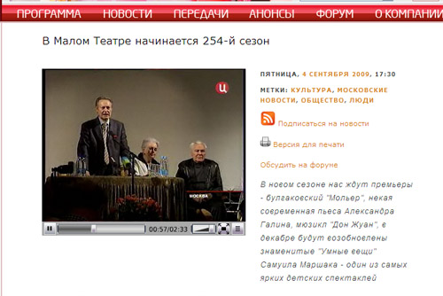После грустных новостей, после награждений и знакомства с новыми актерами труппы перешли к подведению итогов прошлого сезона - причем, сделали это в форме видеоотчета. Старейший театр ищет новые формы, не без самоиронии.