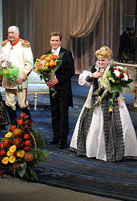 Поздравляем режиссёра — постановщика Владимира Бейлиса и весь коллектив спектакля, в особенности бессменных исполнителей своих ролей Ирину Муравьёву, Ольгу Пашкову, Галину Микшун, Александра Клюквина и Андрея Манке с замечательным юбилеем. Желаем дальнейших творческих успехов!