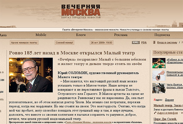 «Вечерняя Москва», 26 октября 2009 года