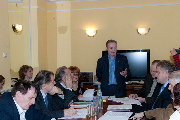 В обсуждении участвовали члены жюри: народный артист СССР В.И.Пьявко, оценивавший соискателей в номинации «Академический вокал»; народный артист СССР и РБ И.М.Лученок и профессор Московской Консерватории В.Г.Агафонников, определившие лауреатов-композиторов; народный артист России Ю.Н.Чернов, представивший соискателей в номинации «Театр»; народная артистка России, директор школы-студии при Ансамбле народного танца Игоря Моисеева Г.М.Апанаева и ведущий педагог-хореограф балета «Тодес» И.Г.Наумов, оценивавшие заявки в хореографии; проректор Российской Академии музыки им.Гнесиных В.В.Власов, представивший соискателей в инструментальном исполнении; заслуженный деятель искусств России Г.В.Гладков, оценивавший детский вокал; композитор В.М.Аникиенко, оценивавший номинантов в «Эстрадном вокале»; кандидат педагогических наук, режиссер Л.В.Данилова; кандидат наук, проректор Российской Академии живописи, ваяния и зодчества Ильи Глазунова Л.С.Хасьянова и ученый секретарь Всероссийского музея декоративно-прикладного и народного искусства Н.М.Макаревич, рассказавшие о результатах отбора по номинации «Художественное творчество»; народный артист России Г.М.Шмелев, доцент Литературного института им.Горького А.П.Торопцев и кандидат наук М.Б.Степанова, осветившие номинацию «Литературное творчество». Соискателей специальной премии государственному или общественному деятелю «За оказание действенной помощи инвалидам и их общественным организациям» представил председатель Оргкомитета Премии, председатель ВОИ, депутат ГД РФ А.В.Ломакин-Румянцев. Руководитель Исполнительной дирекции Премии Г.В.Аничкин проинформировал членов Жюри и Совета попечителей о концепции проведения предстоящих торжественных мероприятий, в числе которых – гала-концерт лауреатов в Малом театре. На заседании также присутствовали представители генерального партнера проекта – холдинга «ФосАгро».