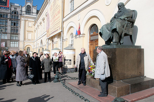 По традиции, сегодняшний смотр начался церемонией возложения цветов к памятнику Островскому, который находится у входа в старинное здание Малого – первого драматического театра Москвы, основанного еще в 1756 году. А затем в фойе, носящем имя прославленного актера Михаила Щепкина, состоялось открытие выставки «Великолепное Щелыково». На ней представлены многочисленные фотографии столь любимой Островским усадьбы, с которой связаны многие страницы его жизни и творчества. Новая экспозиция напоминает также о прошлом Малого театра и его прославленных мастерах.